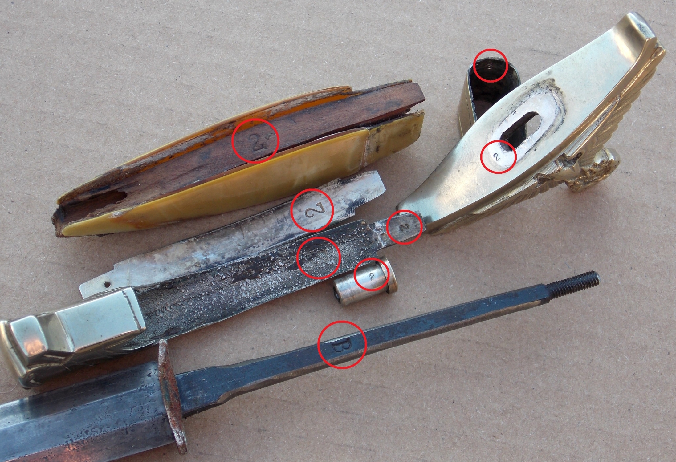 На реверсе всех деталей рукояти и крестовине стоит сборное клеймо - "2".