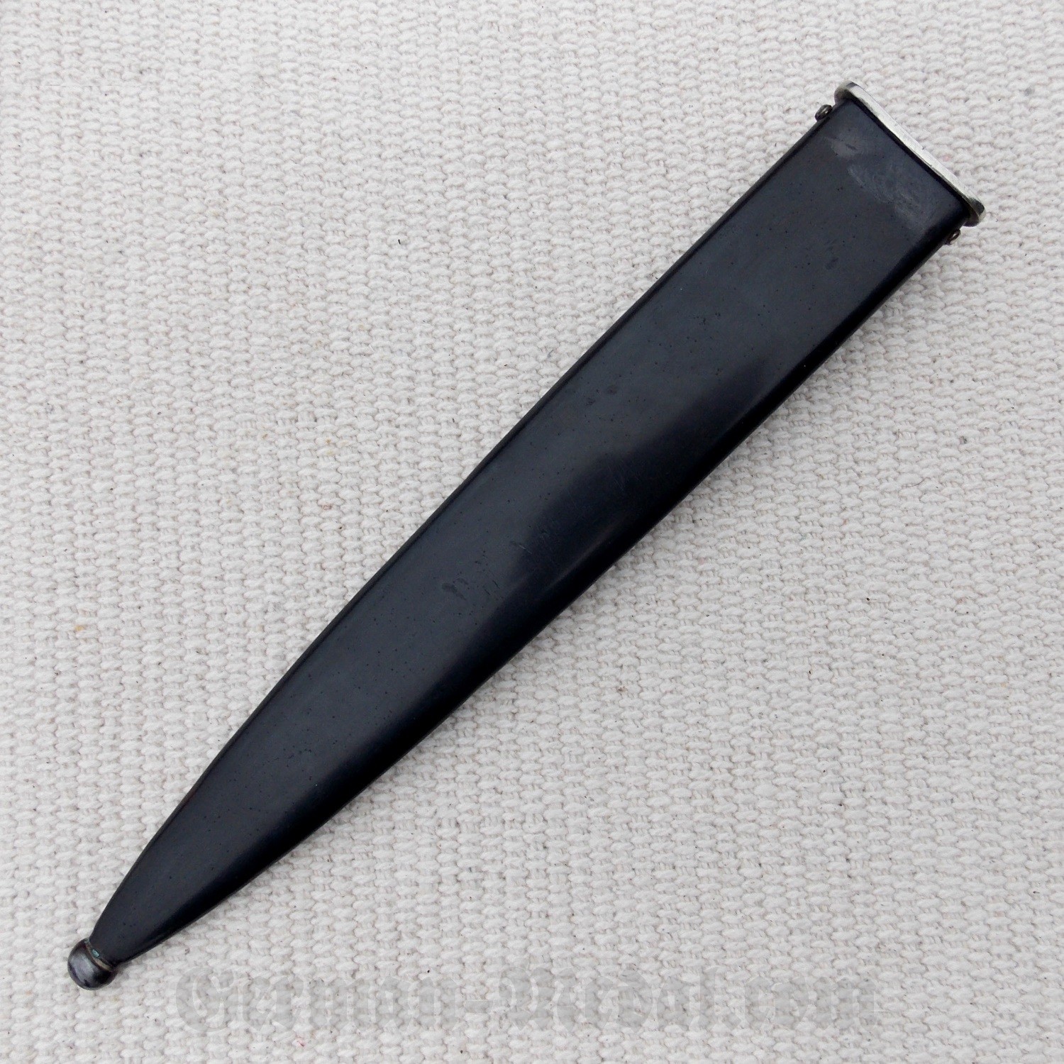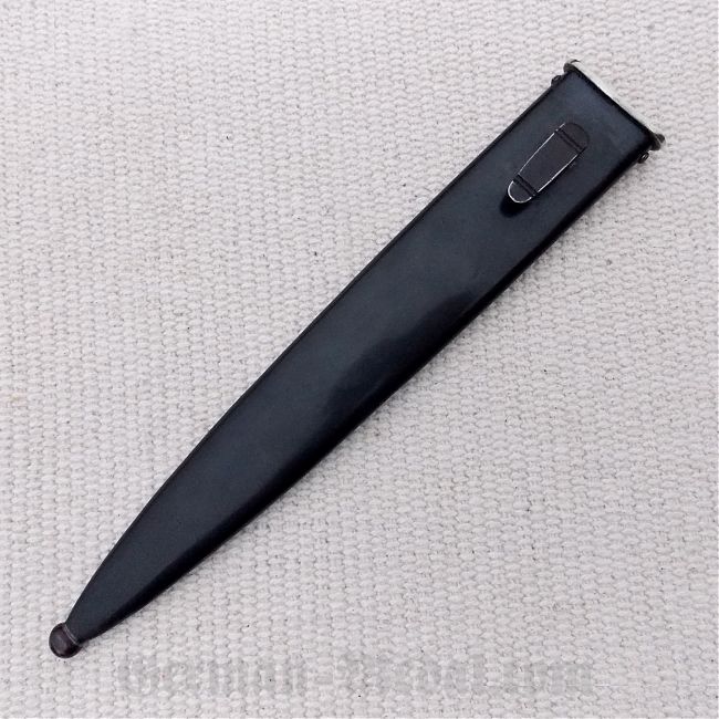 Ножны металлические, магнитные, с тонким устьем и пуговкой на наконечнике, чёрные, в воронении и цапон лаке. Имеется овальный зацеп под устьем для крепления в лопасти портупеи.