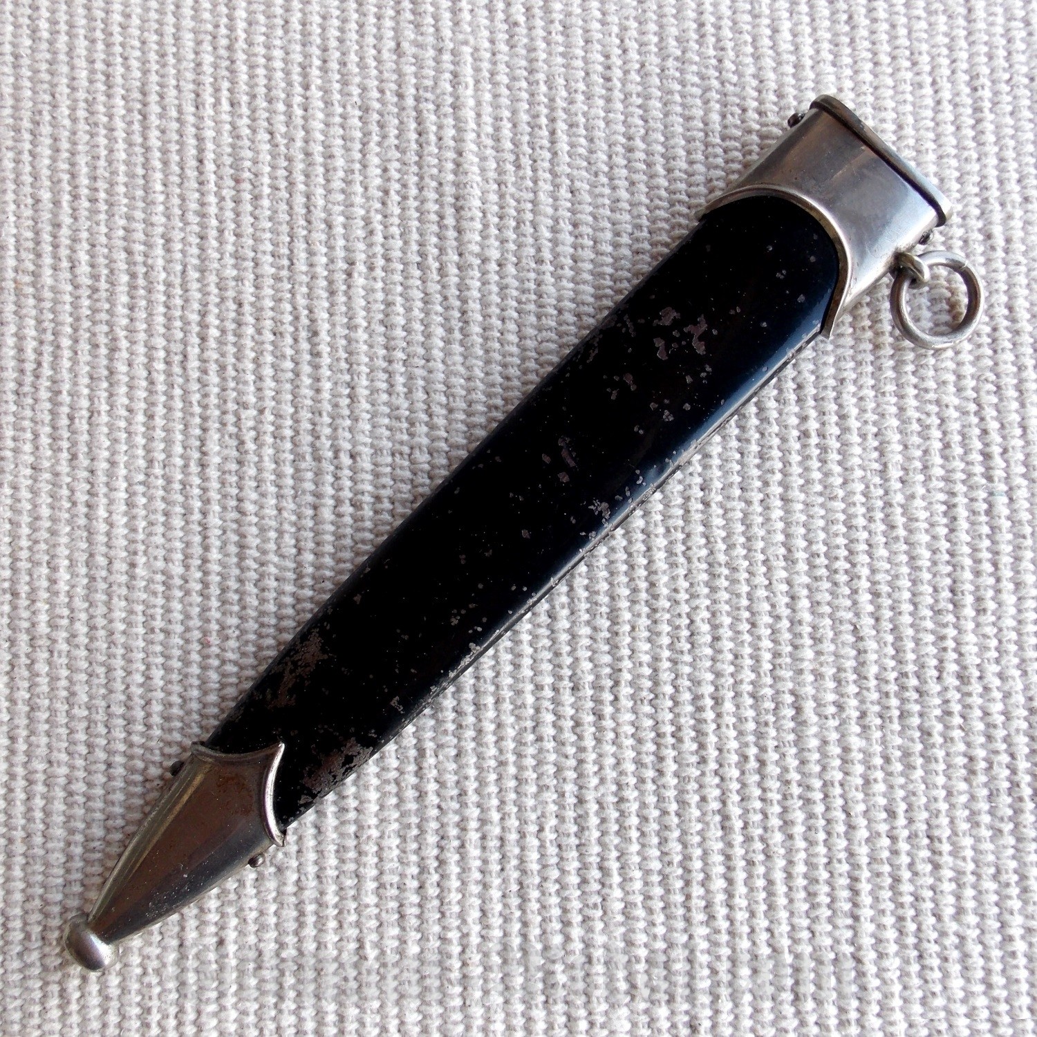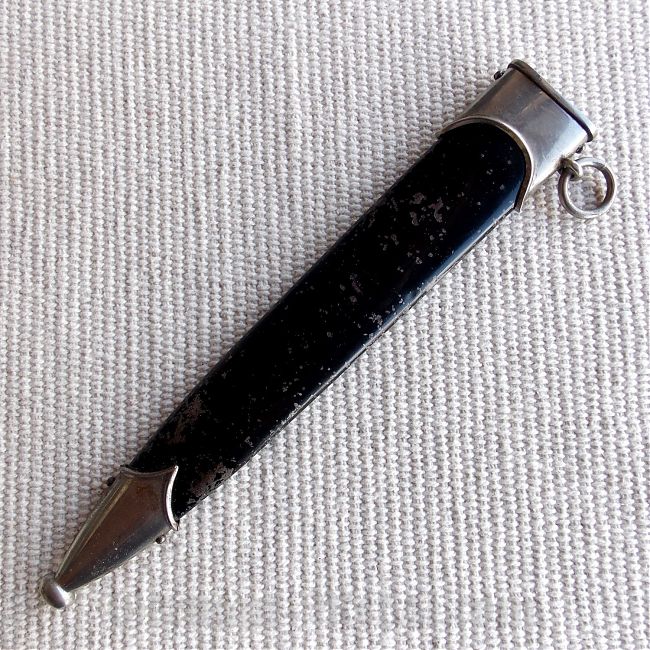 Ножны в оригинальном чёрном окрасе. Прибор ножен из нейзильбера, шарик на наконечнике не смят, все оригинальные болты на месте.