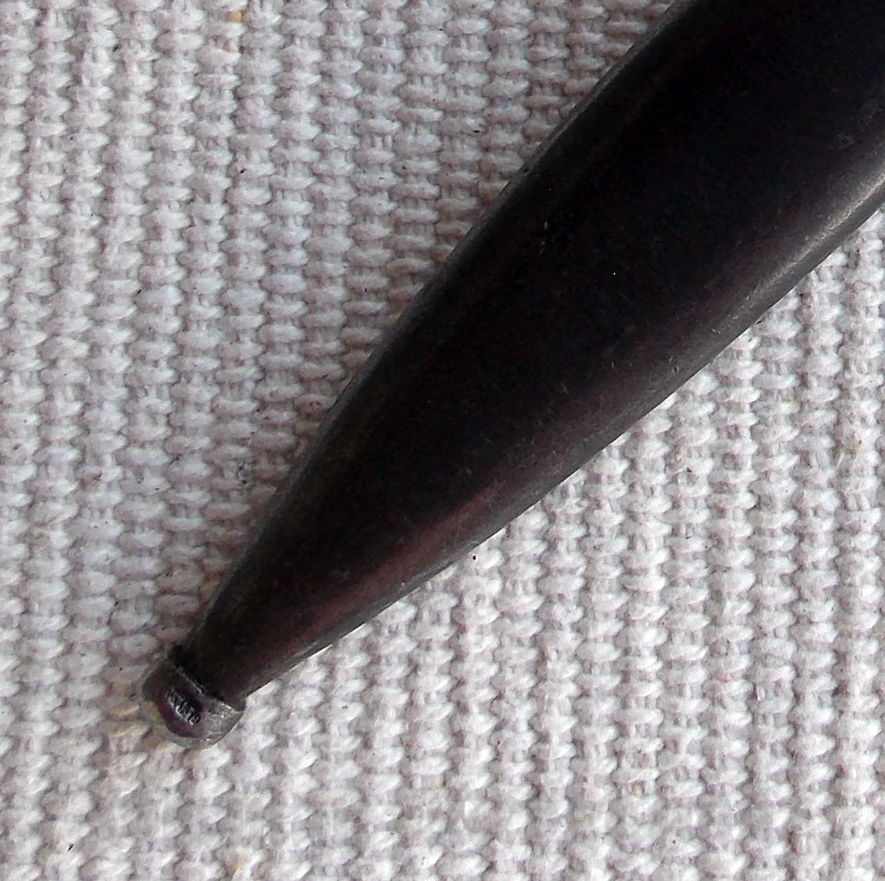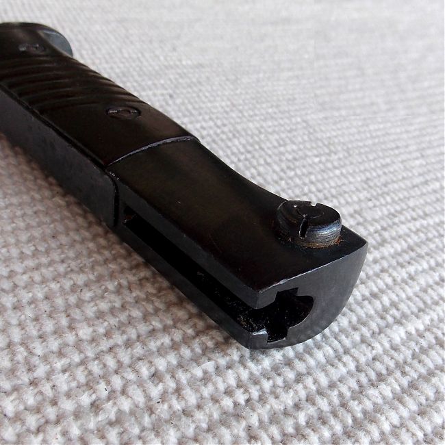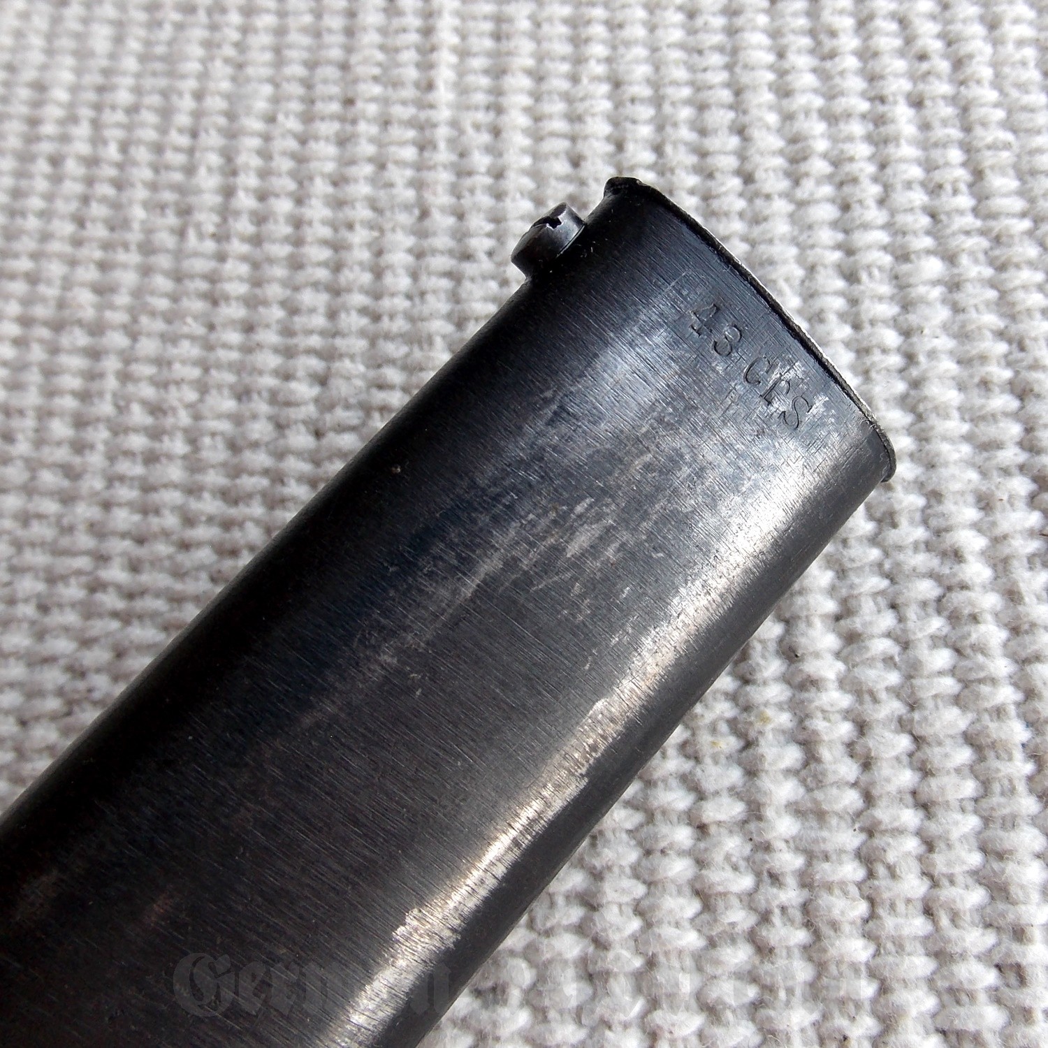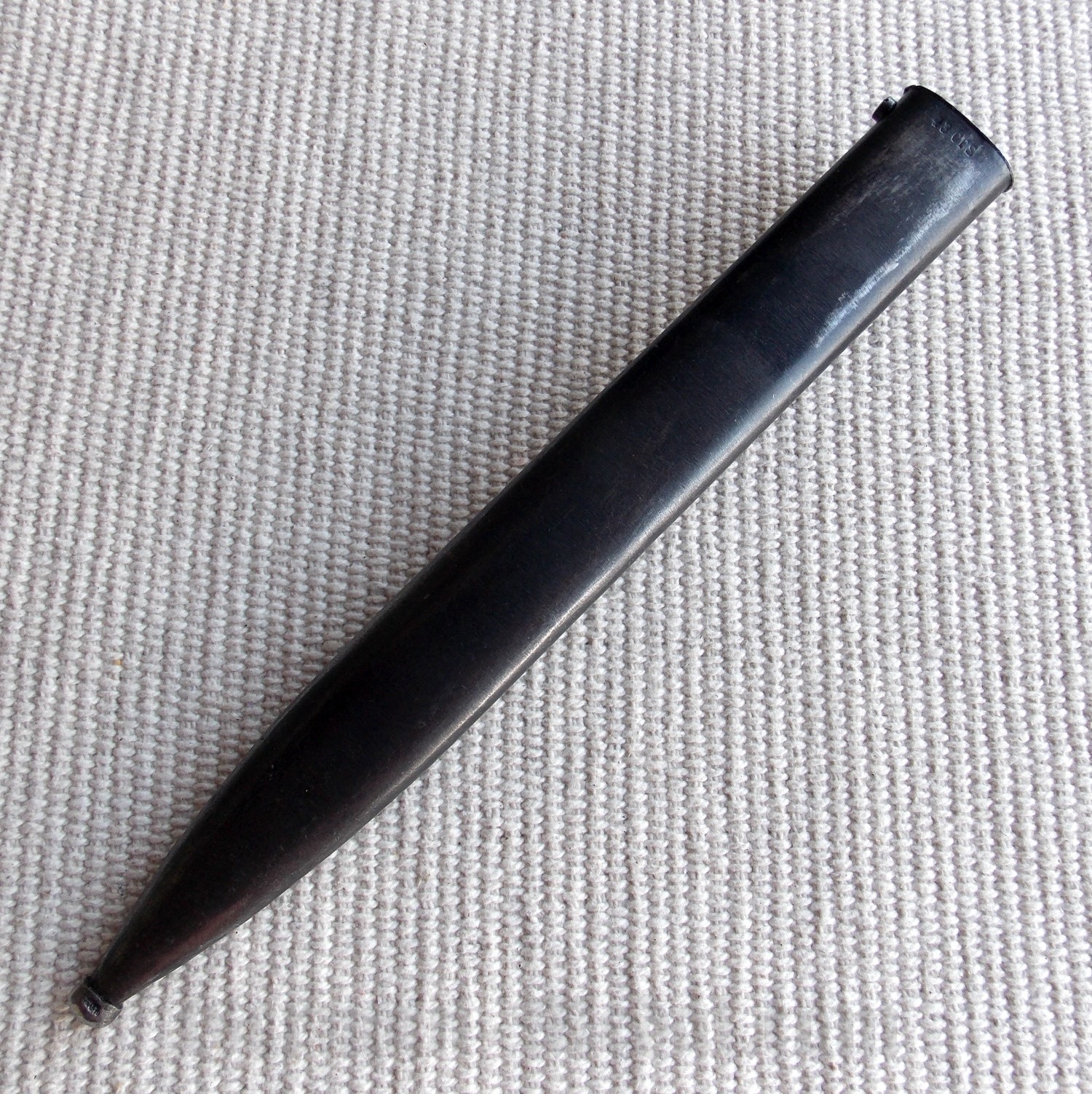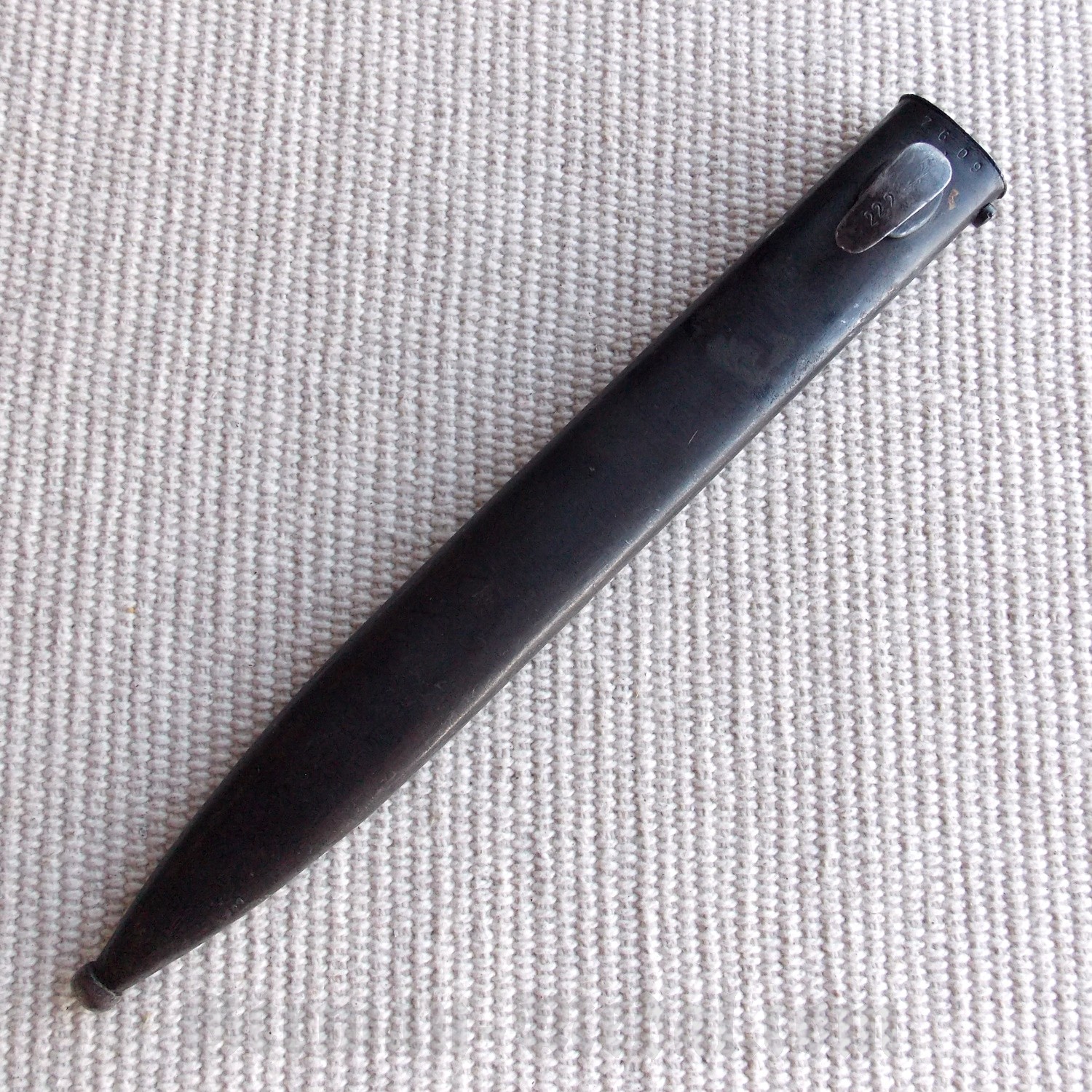 Ножны стальные, в оригинальном покрытии, со вставным подпружиненным устьем, шпеньком и шариком на конце.