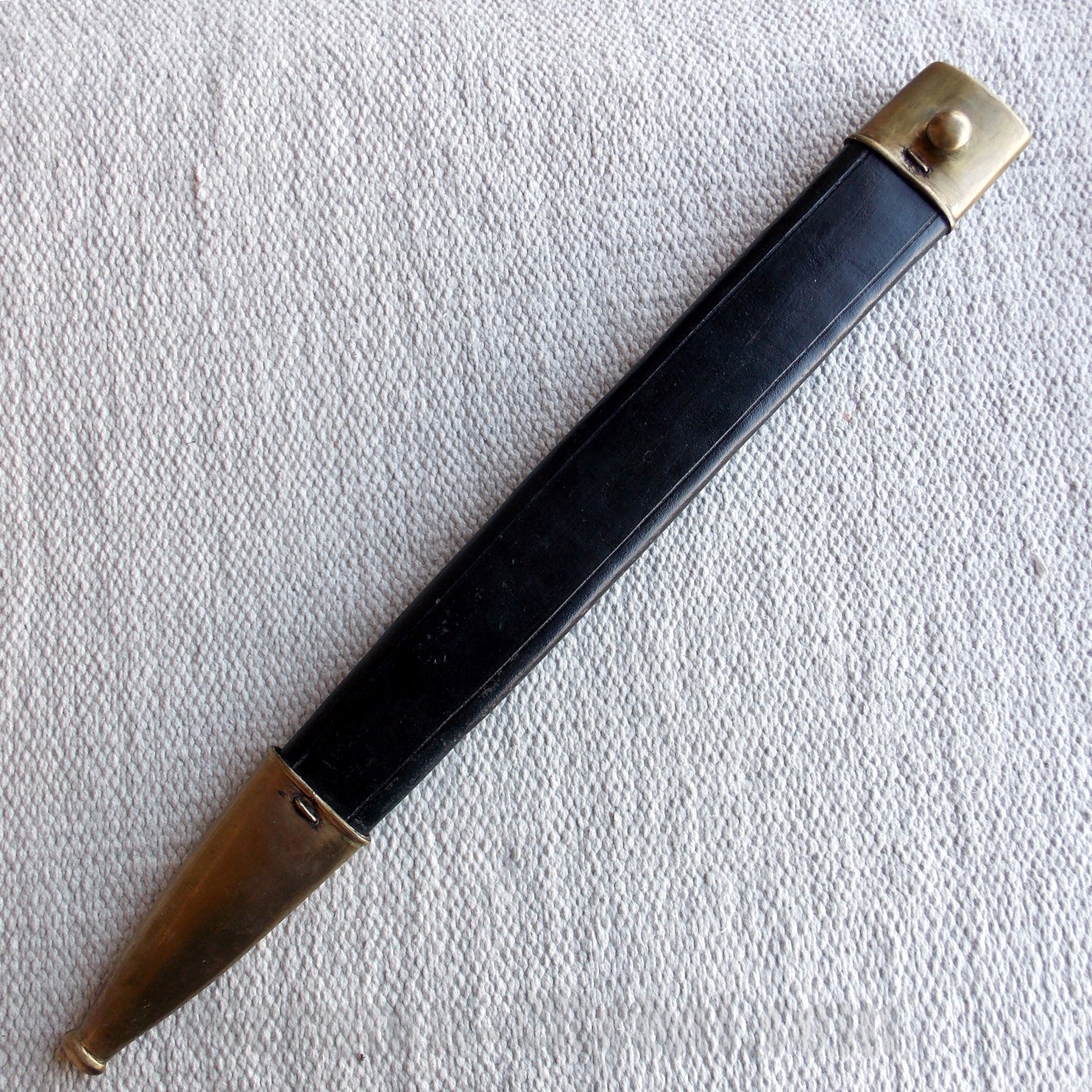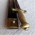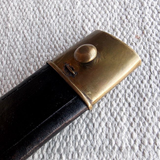 Ножны кожаные с латунным прибором, состоящим из устья со скобой для подвеса и наконечника с шариком.
