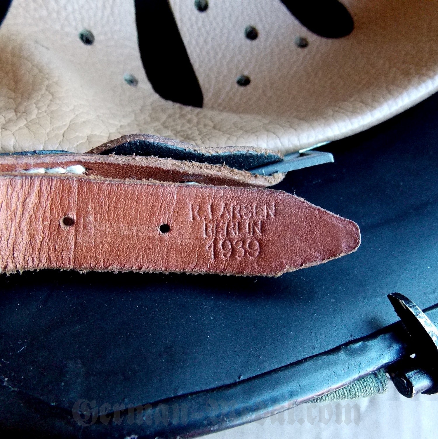 Кожаный подшлемник, в отличном состоянии, на подбородочном ремешке клеймо.