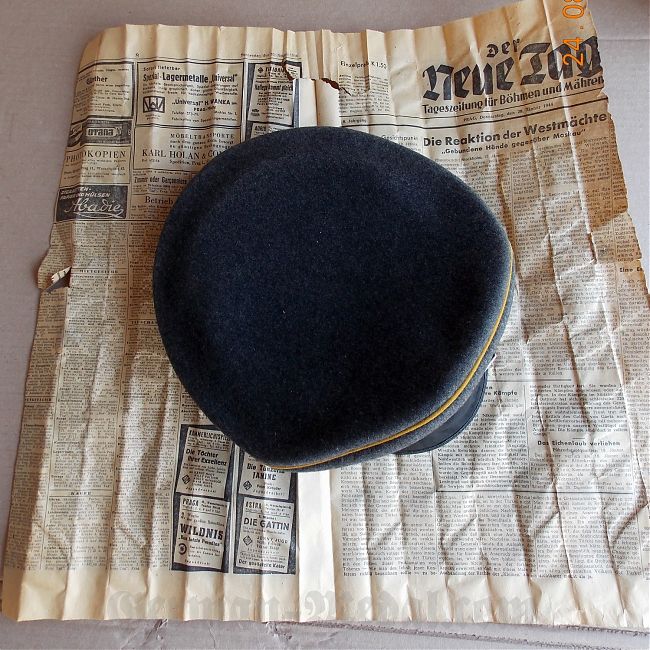 Под подкладкой околышка вложена полоса сложенной газеты (делают для уменьшения размера).