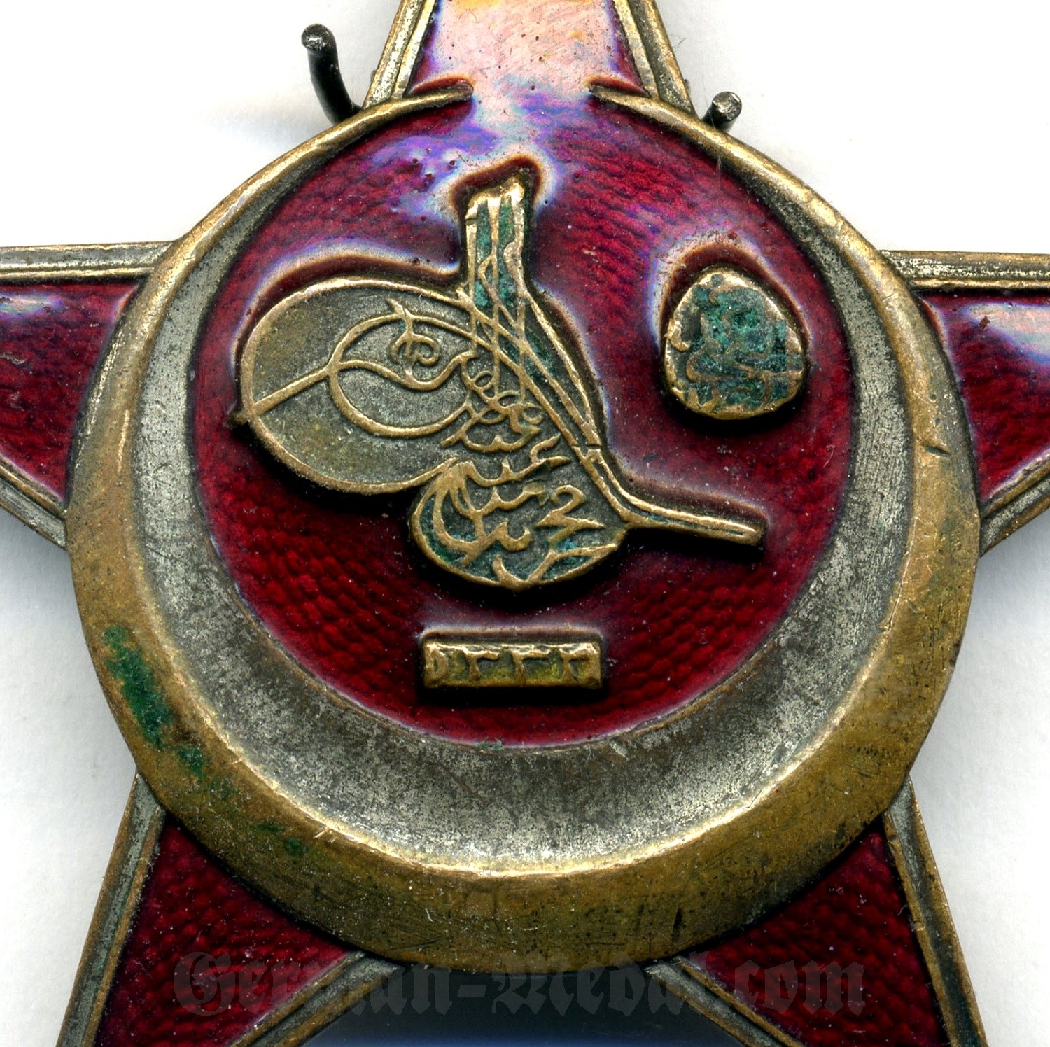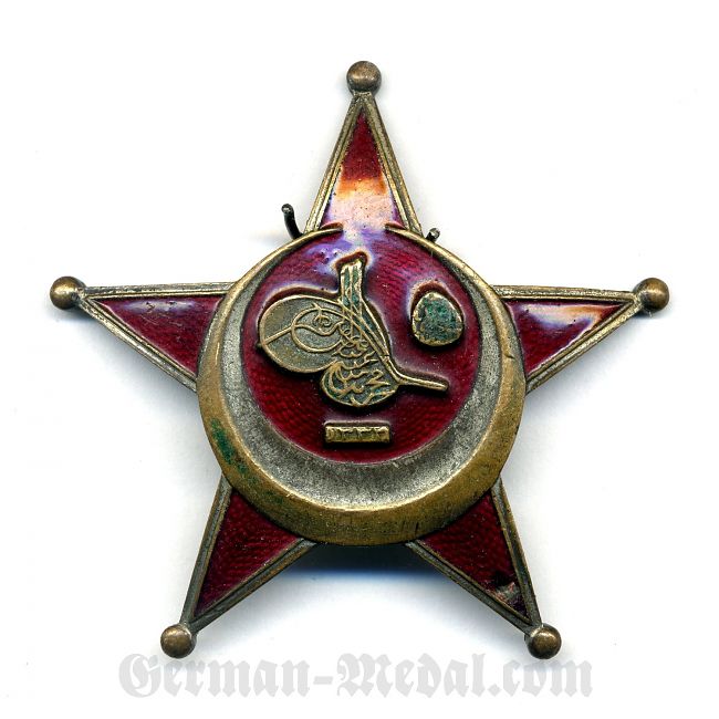 Медаль представляет собой пятиконечную звезду диаметром 56 мм с небольшими шариками на концах лучей. Лучи имеют серебряный ободок и покрыты красной эмалью или лаком. Выпуклый полумесяц, открытый кверху, окружает центральный медальон, внутри полумесяца — тугра султана Мехмеда Решада V с датой «1333» (1915 г.). Реверс плоский, с горизонтальной булавкой или с вертикальной булавкой и двумя вертикальными крючками. Медаль носилась на левой стороне груди.